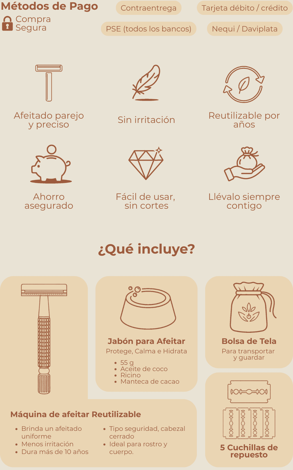 Cualquier hoja estándar de doble filo. El combo incluye 5 repuestos Minora.